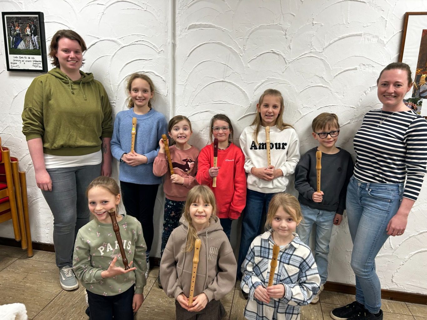 Unter der Leitung von Anna Vinkemeier und Jana Funke lernen die Mädchen und Jungen fleißig Ton für Ton. Die Blockflötenkurse starten jedes Jahr nach den Herbstferien in eine neue Runde. Wir freuen uns bereits jetzt auf viele kleine Musikerinnen und Musiker!
